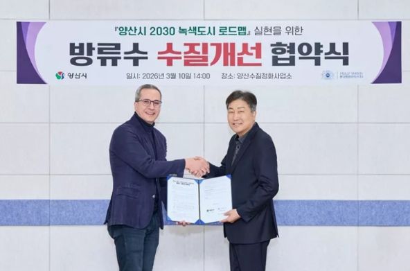 내고향뉴스 윤환열 기자 | 양산시는 3월10일 한국필립모리스(양산공장)와 양산 공공하수처리장 연계 처리수 방류수 수질개선을 위한 자율협약을 양산하수처리장에서 체결했다.