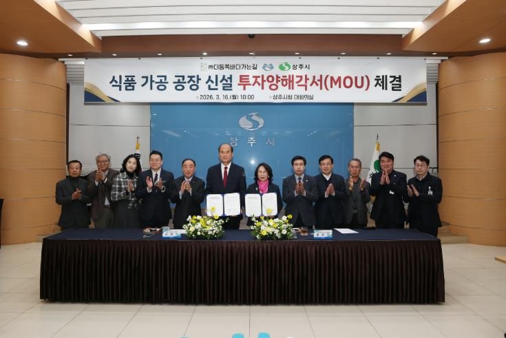 내고향뉴스 장우석 기자 | 주식회사 더동쪽바다가는길과 상주시는 2026년 3월 16일 오전 10시, 상주시청 대회의실에서 상주 일반산업단지 내 수산물 가공식품 제조공장 신설을 내용으로 하는 투자양해각서를 체결했다.