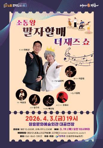 내고향뉴스 김명신 기자 | 장흥군은 오는 4월 3일 저녁 7시 장흥문화예술회관 대공연장에서 ‘소통왕 말자 할매 더 재즈 SHOW’ 토크 콘서트를 개최한다고 전했다.