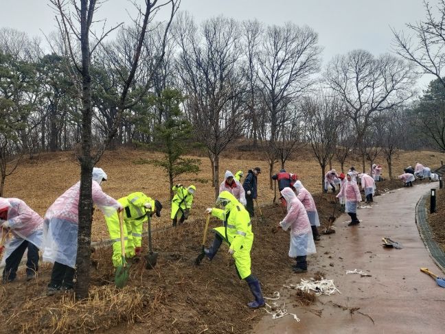 이날 행사는 봄비가 오는 가운데 초막골 생태공원내 초막동천폭포 녹지에서 공무원 등 70여 명이 참석해 진행됐으며 산수국, 층층나무 등 3,000여본의 나무를 심었다.