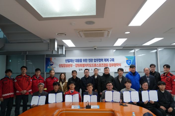내고향뉴스 윤환열 기자 | 산림청 산림항공본부는 3월 18일 강원특별자치도 드론스포츠협회(11개 시·군)와 산림재난 대응 역량 강화를 위한 업무협약(MOU)을 체결했다고 밝혔다.