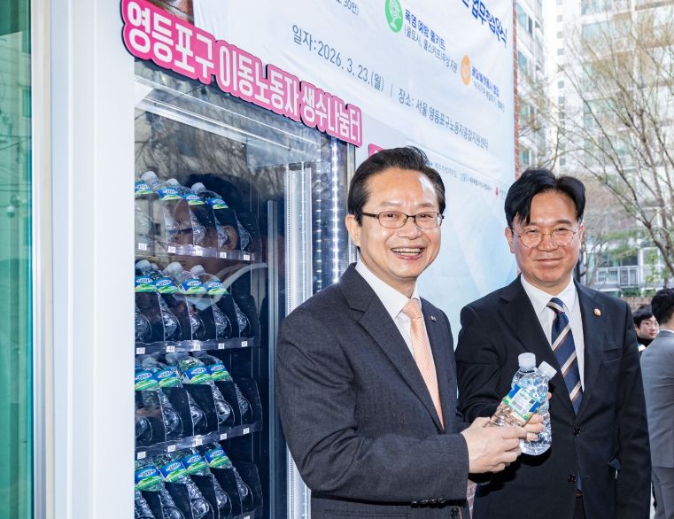 내고향뉴스 장동환 기자 | 영등포구는 지난 20일, 김영훈 고용노동부 장관이 당산동에 위치한 ‘이동노동자 쉼터 1호점’을 방문해 현장을 살피고, 관계기관과 함께 이동노동자 온열질환 예방을 위한 생수 나눔 업무협약을 체결했다고 밝혔다.