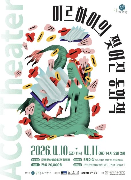 내고향뉴스 김명신 기자 | 군포문화재단은 어린이와 가족이 함께 관람할 수 있는 공연 '미르하이의 찢어진 동화책'을 4월 10일~11일 군포문화예술회관 철쭉홀에서 개최한다고 밝혔다. 이번 공연은 2026 국립아시아문화전당재단 어린이 공연 유통 공모사업의 일환으로, 국립아시아문화전당(ACC) 창·제작 어린이 공연을 지역에 소개하기 위해 마련됐다.