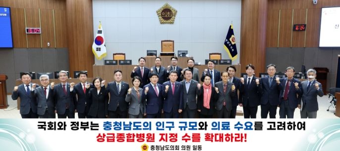 이에 충남도의회는 정부에 ▲충청남도의 상급종합병원 지정수 확대 ▲수도권 중심의 평가·지정 체계 개선 ▲중증·응급·필수의료 대응을 위한 지역 완결형 의료 네트워크 구축 ▲지역 의료인력 양성을 위한 제도적·재정적 지원 마련 등을 촉구했다.