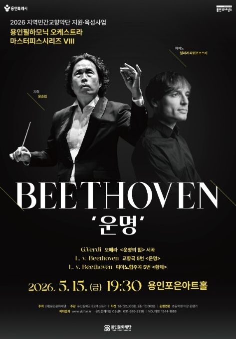 내고향뉴스 김명신 기자 | 용인문화재단은 오는 5월 15일 오후 7시 30분 용인포은아트홀에서 ‘2026년 지역민간교향악단 지원·육성사업’의 첫 공연으로 용인필하모닉오케스트라의 기획공연 '마스터피스 시리즈 Ⅷ - 베토벤 ‘운명’'을 선보인다.