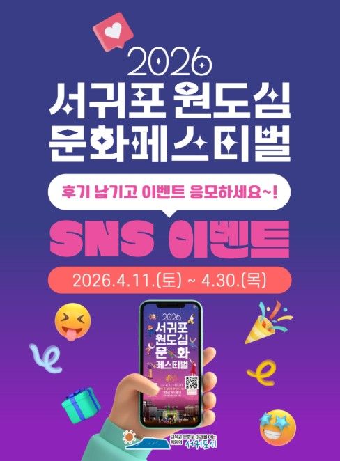 또한, 서귀포시는 개막에 맞춰 시민과 관광객을 대상으로 SNS 이벤트를 진행한다고 밝혔다.