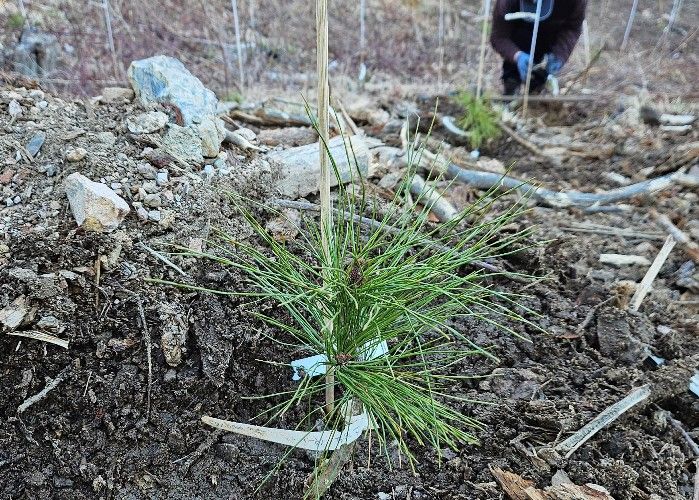 이어 접목 증식을 통해 내병성 개체와 유전적으로 동일한 묘목을 생산하고, 이 중 200그루를 4월 7일 경상북도 영덕군 영해면 일대에 시범 식재했다. 이번 식재는 소나무재선충병 내병성 육종 연구 성과를 실제 산림 현장에 적용한 첫 사례다.