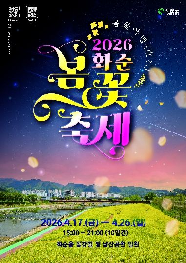 내고향뉴스 김명신 기자 | 전라남도 화순군은 봄을 맞아 지역 대표 축제인 ‘2026 화순 봄꽃 축제’를 오는 4월 17일부터 26일까지 10일간 화순 꽃강길과 남산공원 일원에서 개최한다고 밝혔다.
