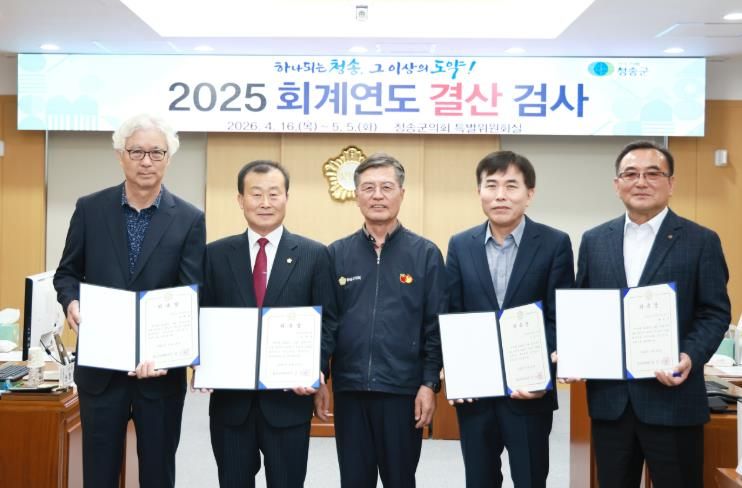 결산검사는 4월 16일부터 5월 5일까지 20일간 의회 특별위원회실에서 실시되며, 위원들은 청송군 2025년도 예산 집행 전반에 대해 점검한 뒤, 문제점 및 개선 사항을 담은 결산검사 의견서를 의회에 제출할 예정이다.