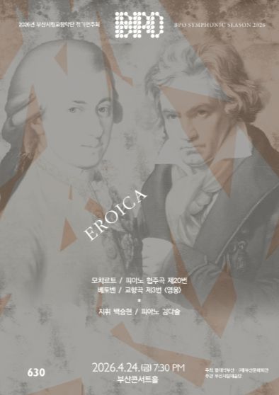 내고향뉴스 김명신 기자 | 부산시립교향악단이 오는 4월 24일 오후 7시 30분, 부산콘서트홀에서 제630회 정기연주회 '에로이카(EROICA)'를 개최한다. 이번 공연은 고전주의의 균형에서 출발해 낭만주의의 확장으로 나아가는 흐름 속에서, 불안과 긴장을 넘어서는 인간의 의지를 조명하는 무대로 마련된다.