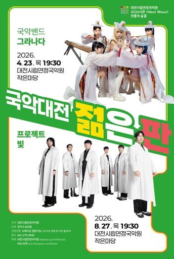 내고향뉴스 김명신 기자 | 대전시립연정국악원은 지역 국악 활성화와 예술 생태계 상생을 위한 지역 국악 활력 프로젝트〈국악대전, 젊은 판〉을 4월 23일 저녁 7시 30분에 국악원 작은마당에서 선보인다.