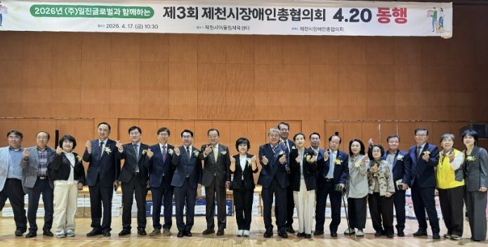 내고향뉴스 김명신 기자 | 제천시장애인총협의회는 지난 17일 제천시어울림체육센터에서 『2026년 ㈜일진글로벌과 함께하는 제3회 제천시장애인총협의회 4.20 동행』 행사를 개최했다.