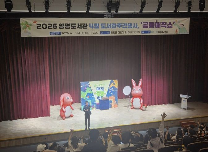 내고향뉴스 김명신 기자 | 양평도서관은 제62회 도서관 주간을 맞아 지난 15일 양평도서관 1층 물빛극장에서 개최한 체험형 공연 ‘공룡 매직쇼’를 성황리에 마쳤다고 밝혔다.