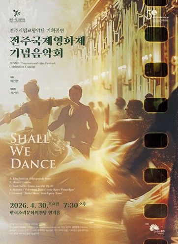 내고향뉴스 김명신 기자 | 전주시립교향악단은 전주국제영화제를 기념해 오는 30일 오후 7시 30분, 한국소리문화의전당 연지홀에서 기획공연으로 전주국제영화제 기념 음악회인 ‘SHALL WE DANCE’를 선보인다.