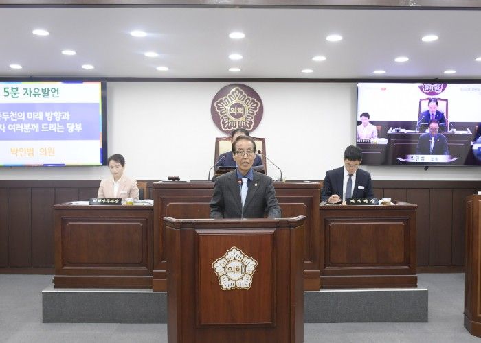 내고향뉴스 김익성 기자 | 동두천시의회 박인범 의원(더불어민주당, 나선거구)이 제345회 임시회 폐회식에서 시의원으로서의 마지막 5분 자유발언에 나섰다. 제1대, 제8대, 제9대 동두천시의원과 제8대 경기도의회 의원을 거친 박 의원은 이번 임기를 끝으로 의정활동을 마무리하며, 공직자들에게 '시민이 찾아오는 동두천'을 향한 당부의 메시지를 전했다.