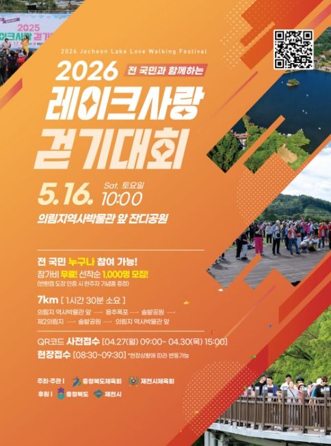 내고향뉴스 김명신 기자 | 제천시체육회는 오는 5월 16일 의림지 일원에서 '2026 레이크사랑 걷기대회'를 개최한다고 밝혔다.