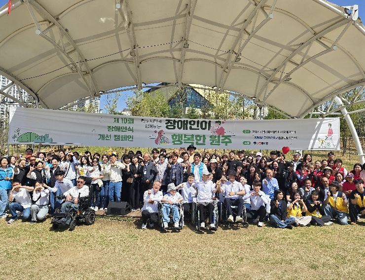 내고향뉴스 김명신 기자 | 원주시지역사회보장협의체 장애인분과는 장애인의 날을 기념해 지난 18일 기업도시 샘마루공원에서 개최한 장애인식 개선 캠페인 ‘장애인이 행복한 원주’를 성황리에 마쳤다.