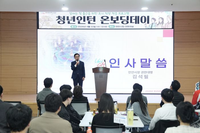 내고향뉴스 김익성 기자 | 천안시는 22일 시청 대회의실에서 청년인턴의 안정적인 직장 적응을 지원하는 ‘청년인턴 온보딩데이’를 개최했다.