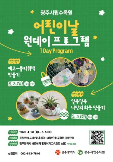 내고향뉴스 김명신 기자 | 광주광역시 시립수목원은 어린이 가족이 함께 하는 ‘수목원 어린이날 원데이 프로그램’ 참가자를 오는 28일부터 선착순 모집한다.