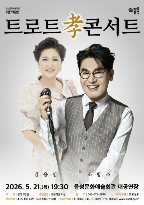 내고향뉴스 김명신 기자 | 음성군은 사랑과 감사의 달 5월을 맞아 따뜻한 위로와 즐거움을 선사할 '트로트 孝 콘서트'를 오는 5월 21일 오후 7시 30분 음성문화예술회관에서 개최한다.