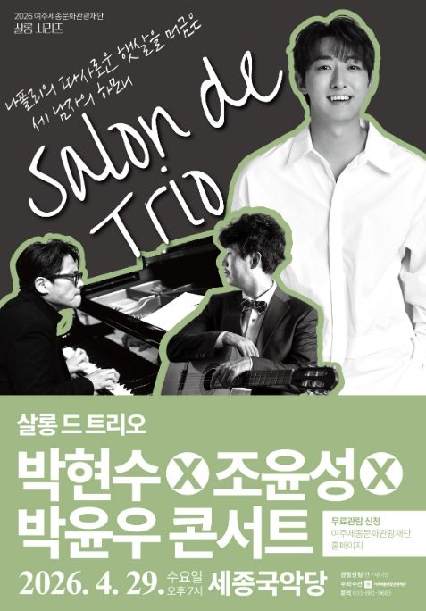 내고향뉴스 김명신 기자 | 여주세종문화관광재단이 오는 29일, 문화가 있는 날을 맞아 2026년 특별기획 살롱 시리즈의 세 번째 무대 '살롱 드 트리오 박현수X조윤성X박윤우 콘서트'를 세종국악당에서 개최한다.