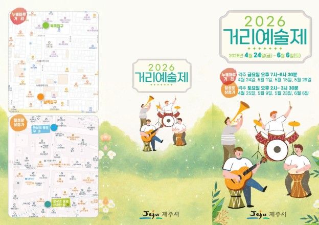내고향뉴스 김명신 기자 | 제주시는 4월 24일부터 6월 6일까지 연동 누웨마루거리와 칠성로 상점가에서 ‘2026 상반기 거리예술제’를 개최한다.