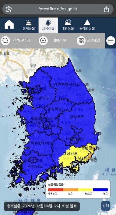 내고향뉴스 김익성 기자 | 산림청 국립산림과학원은 2월부터 사용자가 자신의 현재 위치를 기반으로 산불위험 정보를 실시간으로 확인할 수 있는 '국가산불위험예보시스템'을 모바일 반응형으로 전환하여 제공하고 있다고 밝혔다.
