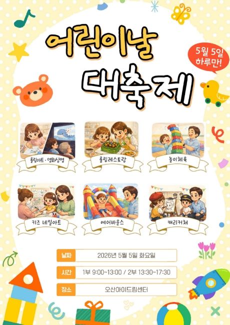 내고향뉴스 김명신 기자 | 오산시가 운영하는 오산아이드림센터가 어린이날을 맞아 온 가족이 함께 즐길 수 있는 특별 체험행사를 마련한다.