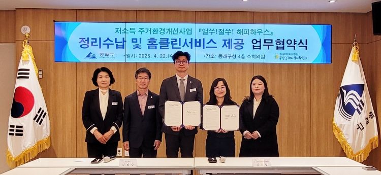 내고향뉴스 채승병 기자 | 부산 동래구는 지난 22일 부산동래지역자활센터(센터장 김희영)와 ‘얼쑤절쑤 해피하우스’ 저소득 주거환경개선사업의 일환으로 정리 수납 및 홈클린 서비스 제공 업무 협약을 체결했다고 밝혔다.