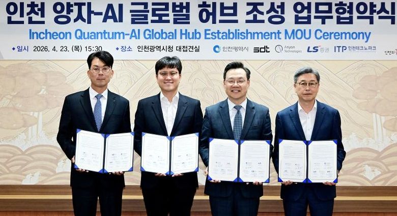 내고향뉴스 임정빈 기자 | 인천광역시는 ㈜에스디티(이하 ‘SDT’), 미국 Anyon Computing(이하 ‘Anyon’), LS증권, 인천테크노파크와 함께 ‘양자-AI 글로벌 허브 조성’을 위한 업무협약(MOU)을 체결했다고 밝혔다.
