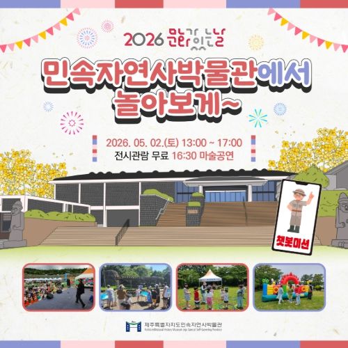 내고향뉴스 김명신 기자 | 제주특별자치도 민속자연사박물관은 오는 5월 2일 오후 1시 박물관 야외 광장에서 2026년 ‘문화가 있는 날’ 첫 행사인 ‘민속자연사박물관에서 놀아보게~’를 개최한다.