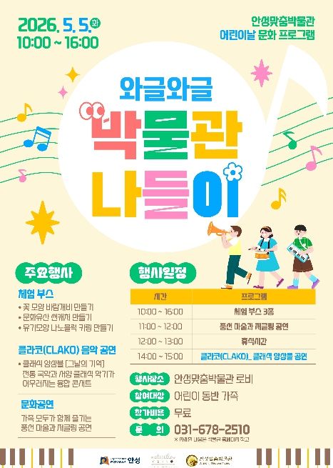 내고향뉴스 김명신 기자 | 안성맞춤박물관은 오는 5월 5일 어린이날을 맞아, 온 가족이 함께 즐길 수 있는 문화 프로그램 ‘와글와글 박물관 나들이’를 개최한다고 밝혔다.