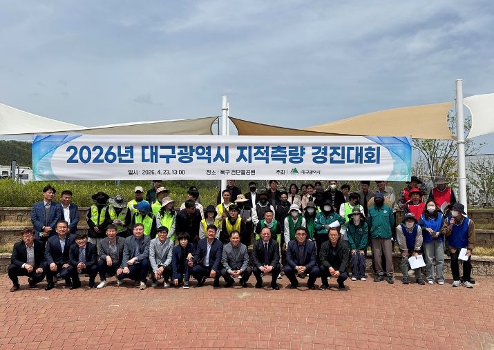 내고향뉴스 윤환열 기자 | 대구광역시는 4월 23일 북구 검단들공원에서 9개 구·군 지적공무원들이 참여하는 ‘2026년 지적측량 경진대회’를 개최했다. 이번 대회 결과, 중구가 최우수상의 영예를 안았으며, 북구와 동구가 각각 우수상과 장려상을 받았다.