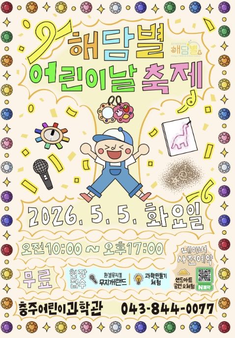 내고향뉴스 김명신 기자 | 충주어린이과학관은 오는 5월 5일 어린이날을 맞아 연나이 8세 이하 어린이와 동반 가족을 대상으로 ‘해담별 어린이날 축제’를 무료로 개최한다고 밝혔다.