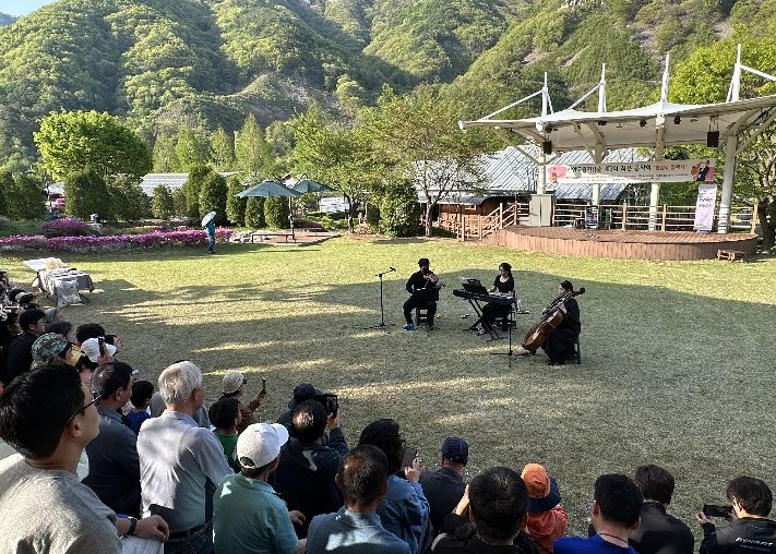 내고향뉴스 김명신 기자 | 전북특별자치도 진안군 정천면에 위치한 진안고원치유숲에서 지난 4월 25일, 제2회 작은 음악회 ‘봄날의 클래식’이 숲속 야외공연장에서 성황리에 개최됐다.