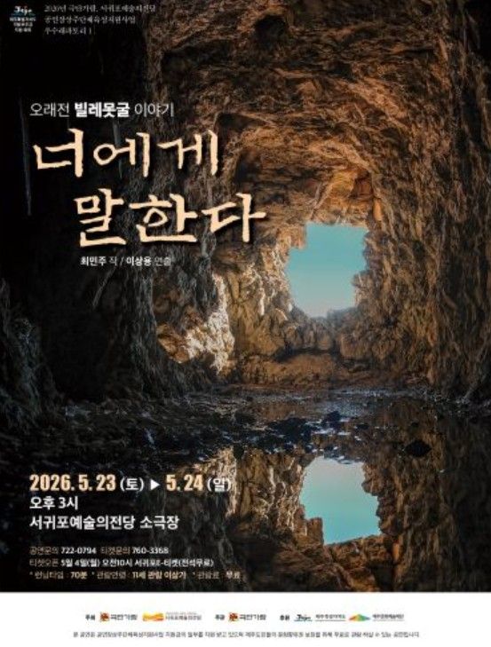 내고향뉴스 김명신 기자 | 서귀포예술의전당은 2026 공연장상주단체육성지원사업의 일환으로 교류공연 극단 가람의 연극 '너에게 말한다'를 5월 23일과 24일 오후 3시, 서귀포예술의전당 소극장에서 총 2회에 걸쳐 선보인다.