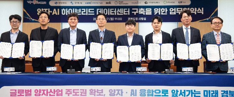 구미시는 4월 27일 경북도청에서 경상북도, ㈜SDT, 구미전자정보기술원, 모빌린트, Anyon Technologies, ㈜마키나락스, ㈜I-ESG, LS증권 등 기술·투자·행정 분야 9개 핵심 기관과 '양자·AI 하이브리드 데이터센터 구축을 위한 업무협약(MOU)'을 체결했다고 밝혔다.
