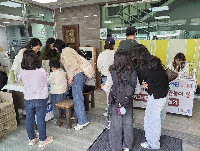 여성·봉양도서관에서도 ‘손 바쁜 도서관’, 글라스아트 ‘반짝반짝 선캐처’, 친환경 공예 ‘제스모나이트 꽃병 만들기’ 등 전 연령층이 참여할 수 있는 다양한 프로그램이 운영됐다.
