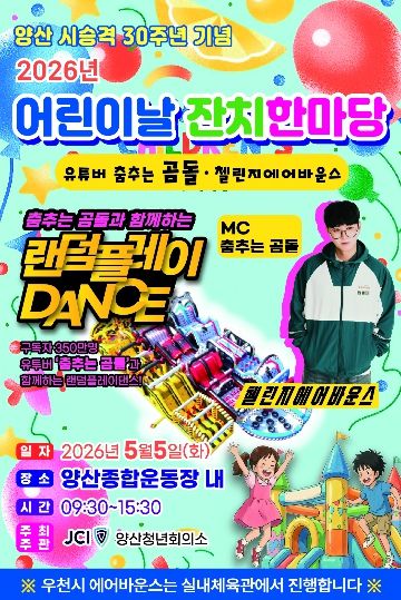 내고향뉴스 김명신 기자 | 양산시는 5월 5일 9시 30분부터 15시 30분까지 양산종합운동장 주경기장에서 '2026년 어린이날 잔치 한마당' 행사가 개최된다고 밝혔다.