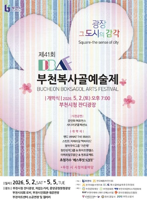 개막식은 5월 2일 오후 7시 부천시청 잔디광장 특설무대에서 열린다. 7인조 브라스 밴드 ‘WHAT A BRASS’를 시작으로 스턴트 치어리딩 ‘빅타이드’, 창작 국악 ‘가온락’, 청년성악과 화이트엔젤스의 합창 무대가 차례로 펼쳐지고, 신예 걸그룹 ‘에스투잇(S2IT)’도 무대에 올라 분위기를 더할 예정이다.