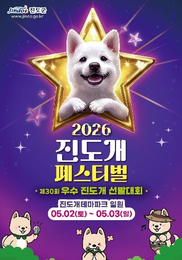 내고향뉴스 김명신 기자 | 진도군이 오는 5월 2일부터 3일까지 이틀간 진도개테마파크에서 ‘진도개의 고향, 진도개테마파크에서의 만남’을 주제로 ‘2026 진도개 페스티벌’과 ‘제30회 우수 진도개 선발대회’을 동시에 개최한다.