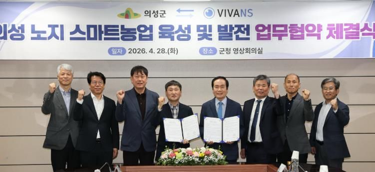 특히 ㈜비바엔에스는 이번 협약의 일환으로 의성군 내 부설 '노지스마트농업연구소'(가칭)를 설립·운영하기로 했다.