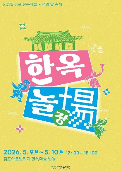내고향뉴스 김명신 기자 | 김포문화재단은 오는 5월 9일부터 5월 10일까지 양일간 김포아트빌리지 한옥마을 일대에서 ‘2026 김포 한옥마을 가정의 달 축제 '한옥놀장(場)'’을 개최한다고 밝혔다.
