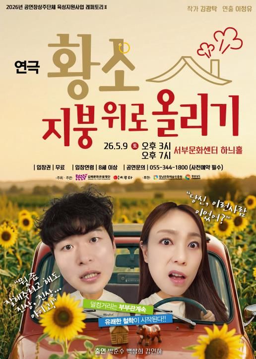 내고향뉴스 김명신 기자 | (재)김해문화관광재단 김해서부문화센터는 경남문화예술진흥원이 주관하는 ‘2026 공연장상주단체 육성지원사업’에 선정되어, 오는 5월 9일 두 번째 레퍼토리 공연 연극 '황소, 지붕위로 올리기'를 선보인다.