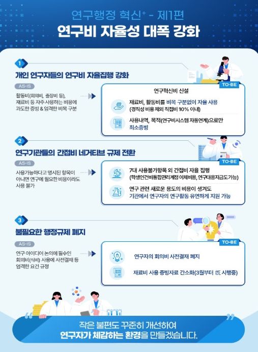 내고향뉴스 김익성 기자 | 과학기술정보통신부은 4월 28일 국무회의에서 연구비 자율성 강화를 위한 「국가연구개발혁신법 시행령」 개정안이 의결됐다고 밝혔다.