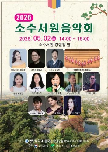 이번 음악회는 국가유산청 공모사업 ‘2026년 세계유산 활용프로그램’의 일환으로, 세계유산 가치의 보존 및 전승 나아가 창의적 활용을 통한 부가가치를 창출하고자 기획됐다.