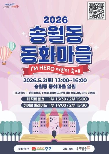 내고향뉴스 김명신 기자 | 인천시 중구는 어린이날을 맞아 오는 5월 2일 ‘2026년 송월동 동화마을 어린이 축제’를 개최한다고 밝혔다.