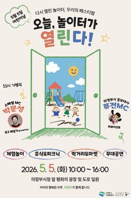 내고향뉴스 김명신 기자 | 의정부시는 제104회 어린이날을 맞아 5월 5일 오전 10시부터 오후 4시까지 의정부시청 앞 평화의 광장 및 도로 일원에서 ‘2026년 의정부시 어린이날 기념행사’를 개최한다.