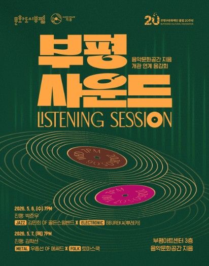 한편, ‘지음’ 임시 개관을 기념해 음감회 ‘부평사운드 리스닝세션’이 5월 6일과 7일 열린다. 이번 행사는 ‘문화도시 부평’ 사업을 통해 제작된 ‘부평사운드’ 음반을 주제로 음반 제작에 참여한 음악평론가 김학선, 토마스쿡, 우종선(메써드) 등 총 6팀이 참여해 음악 이야기와 새로운 청취 경험을 선사할 예정이다.