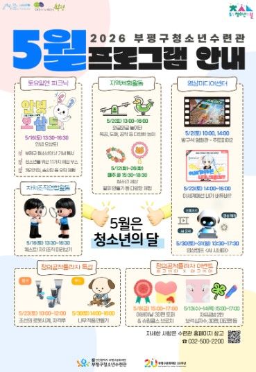 내고향뉴스 김명신 기자 | 부평구청소년수련관은 5월 청소년의 달을 맞아 청소년들의 창의융합 역량 강화와 진로 탐색을 위한 다양한 프로그램을 운영한다고 밝혔다.